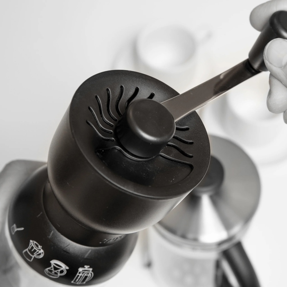 A transparent grounds chamber lets you see your progress, with a removable espresso filter basket–sized second chamber for added convenience. The easy-turn, lever-style handle offers smooth grinding and removes quickly for compact storage. Smart, simple, and perfectly precise—just how coffee should be