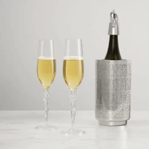 Carrol’s ‘discussion’ figures are caught in conversation and etched on mirror polished stainless steel which makes it a show stopping barware accessory. Pair the Wine Cooler with the Discussion Tray, Ice Bucket, Ice Tongs and Cocktail Shaker for the perfect entertaining collection. This range has a distinct masculine touch that brings sophistication and refinement to any bar space. This piece is ideal as a gifting choice for white wine connoisseurs.