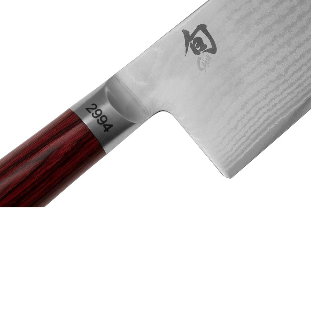 VG MAX steel with a hardness of 61 (ยฑ1) HRC forms the entire blade’s core right up to its edge. Sheathed in 32 layers of Damascus steel, the knife embodies a peerless anatomy paired with a resilient blade that is both hard and flexible at once due to its hybrid composition. The Shun Classic blades have a double-sided edge.