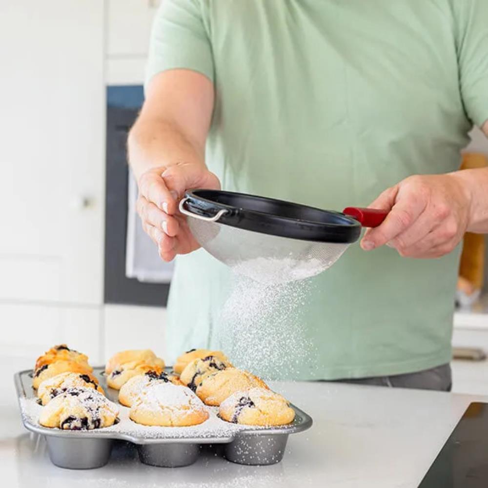 The KitchenAid Classic Stainless Steel Mesh Strainer Red is a kitchen essential for rinsing, straining, and sifting. Featuring a fine stainless-steel mesh basket with a built-in lip and handle rest, it offers dependable performance for both dry and wet ingredients. The red handle is crafted for grip and comfort, with a convenient hanging loop for storage. Whether draining pasta or sifting flour, this sieve delivers control and ease