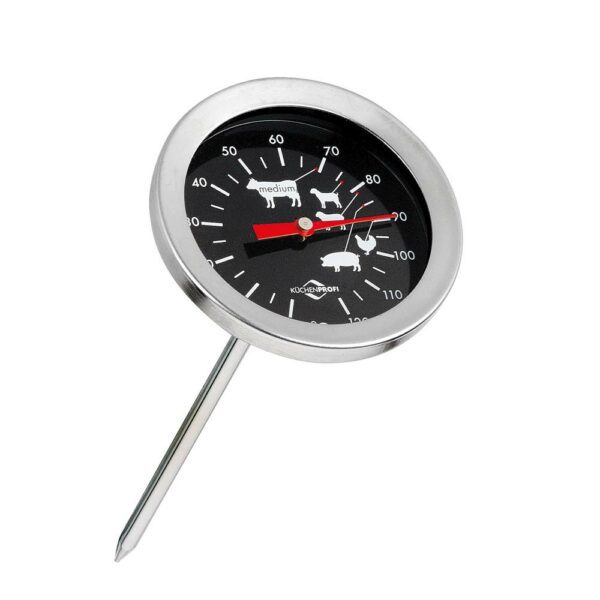 The Kuchenprofi Roast Thermometer Black is a versatile kitchen tool designed to ensure your meats are cooked to perfection. This dual-function thermometer serves both as an oven thermometer and a roast thermometer, providing accurate readings for both oven and core temperatures. With visual indicators for various meat types, it simplifies the cooking process, helping you achieve the desired doneness every time.