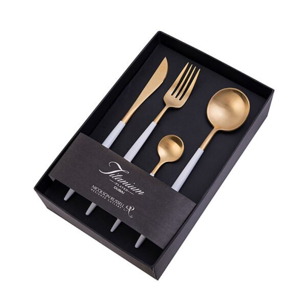 - Made from 18/10 stainless steel with matte gold titanium plating