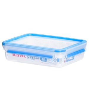 Discover a hygienic food storage solution with the Tefal Masterseal Fresh Food Container that keeps food fresh for longer. With its 100% leak proof, microwave safe and frost resistant design, it’s perfect for conserving, transporting and reheating food with ease all in the same container. Its closure system is innovative with its 4 clips for easy opening and closing.