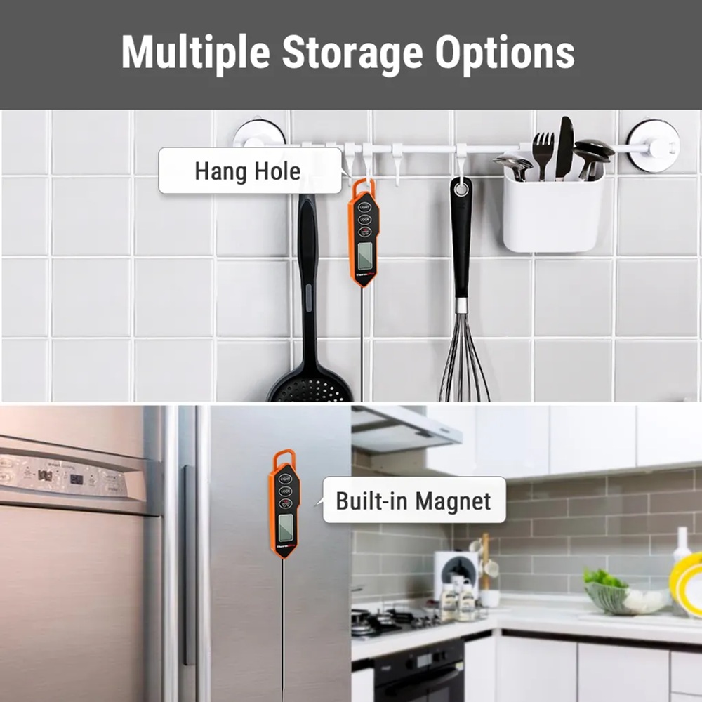 Featuring a 13.6cm food-grade stainless steel probe, backlit LCD display, magnetic back for convenient storage and auto shut-off, it combines precision, convenience and durability. Lightweight and compact, it is suitable for both home cooks and professional kitchens.
