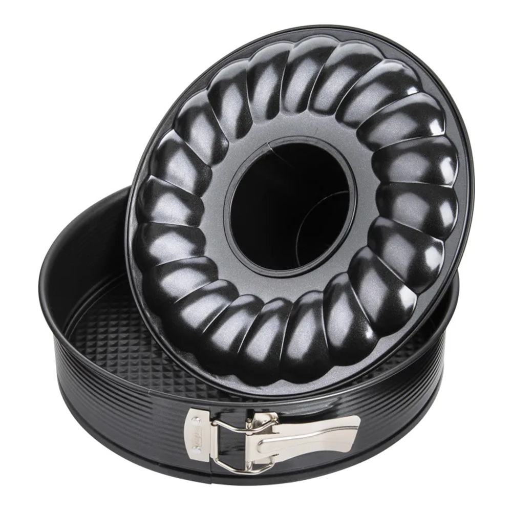 The Zenker Dual Base Springform Pan offers two baking pans in one smart design โ giving you both a classic flat base and a bundt tube base for maximum versatility in the kitchen. Built from durable carbon steel with a premium non-stick coating, this pan provides reliable performance, easy release results and even oven heat distribution.